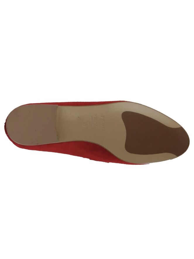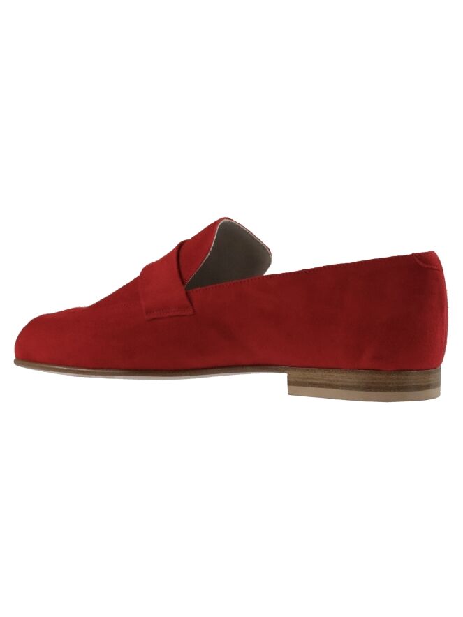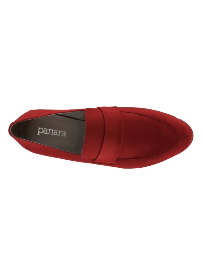 Een instapper van Panara in de kleur rood. Over de voorvoet met een ronde neus is een smalle band in hetzelfde materiaal als de instapper. De instapper is aan de binnenkant met leder gevoerd.
