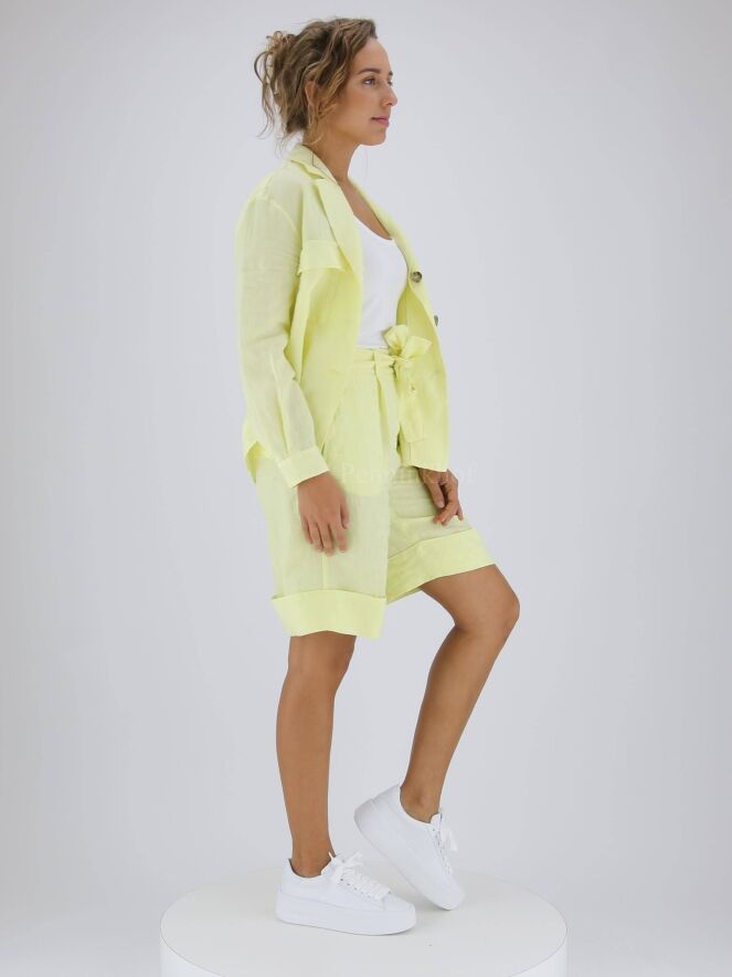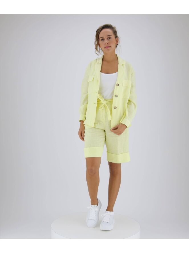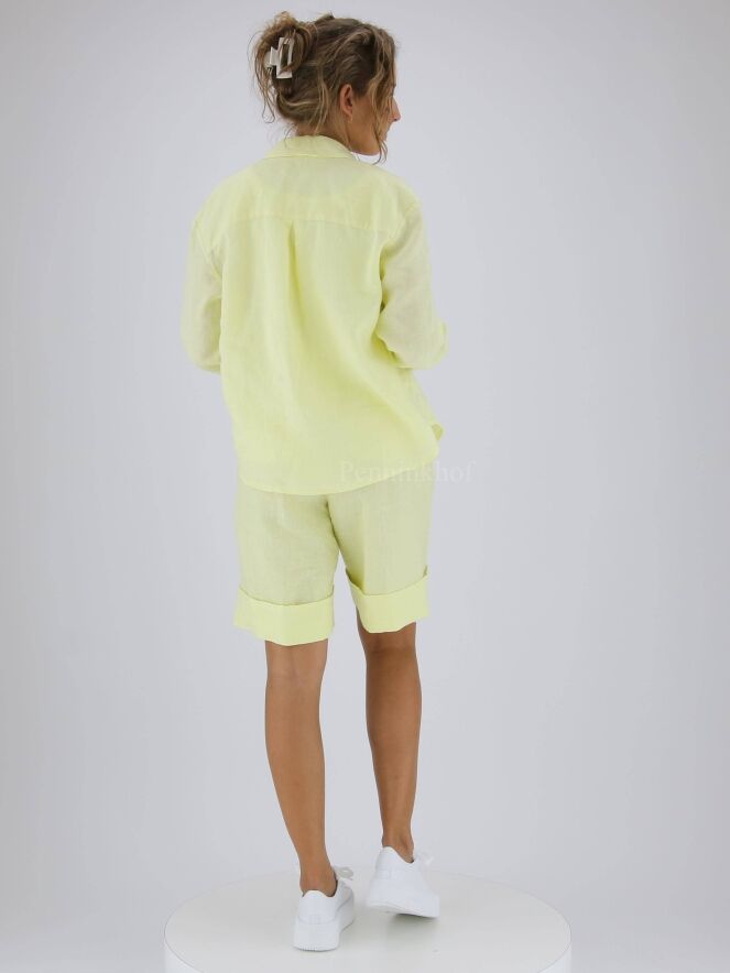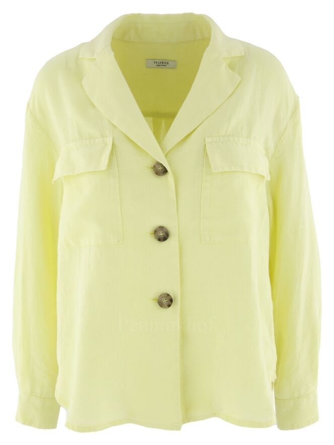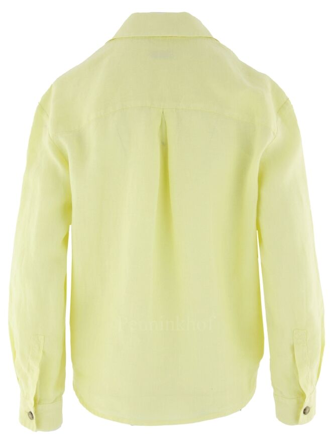 Een blouse van Peserico in een pastel gele kleur. De blouse heeft een 3 knoops sluiting en aan de achterzijde is ter hoogte van de schouderbladen een stiknaad met in het midden een plooi. Deze blouse mag op 30 graden worden gewassen.