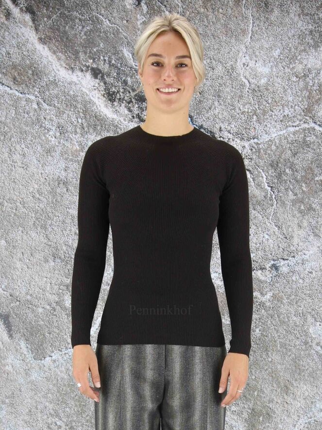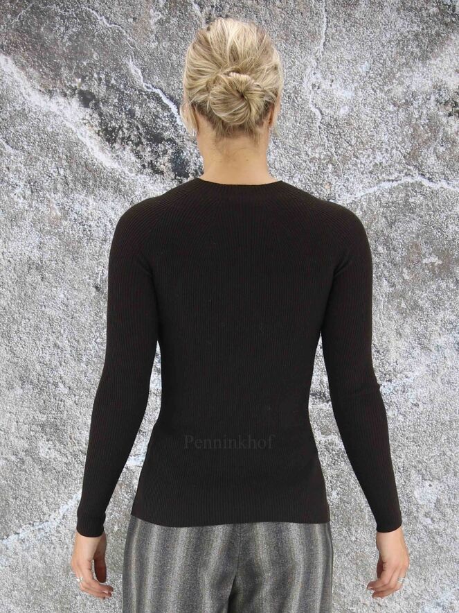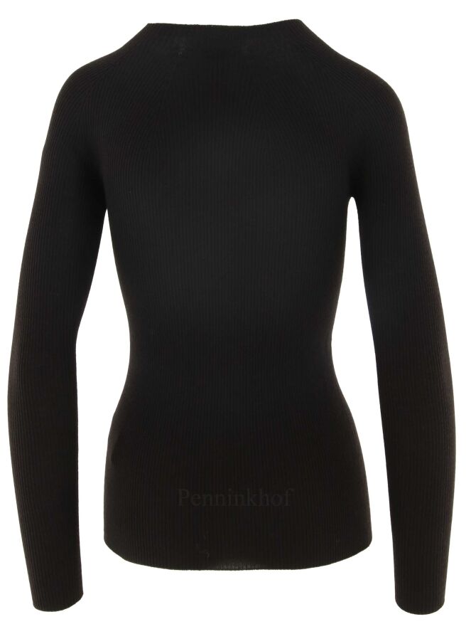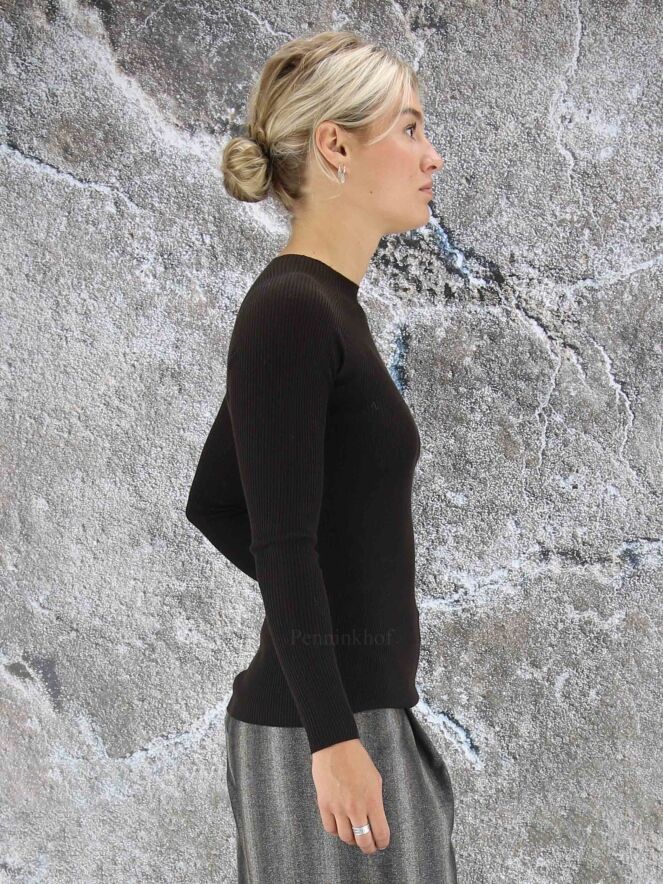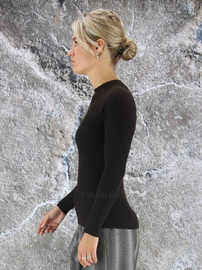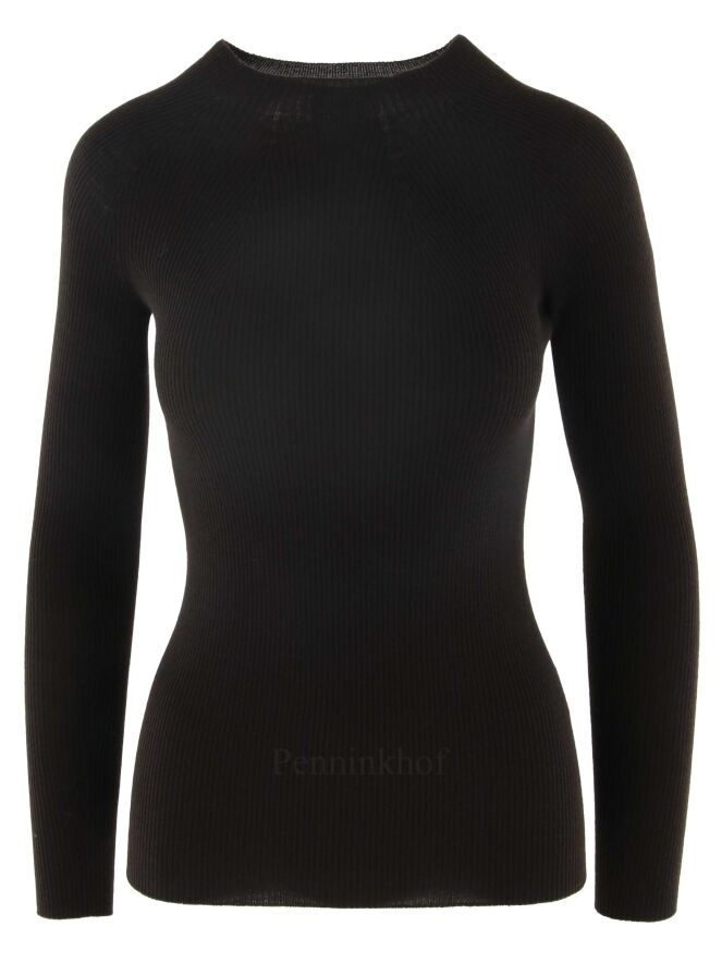 Een luxe fijn geribbelde pullover van Peserico in de kleur mokkabruin. De pullover heeft een hoge hals en mag op de hand worden gewassen.
