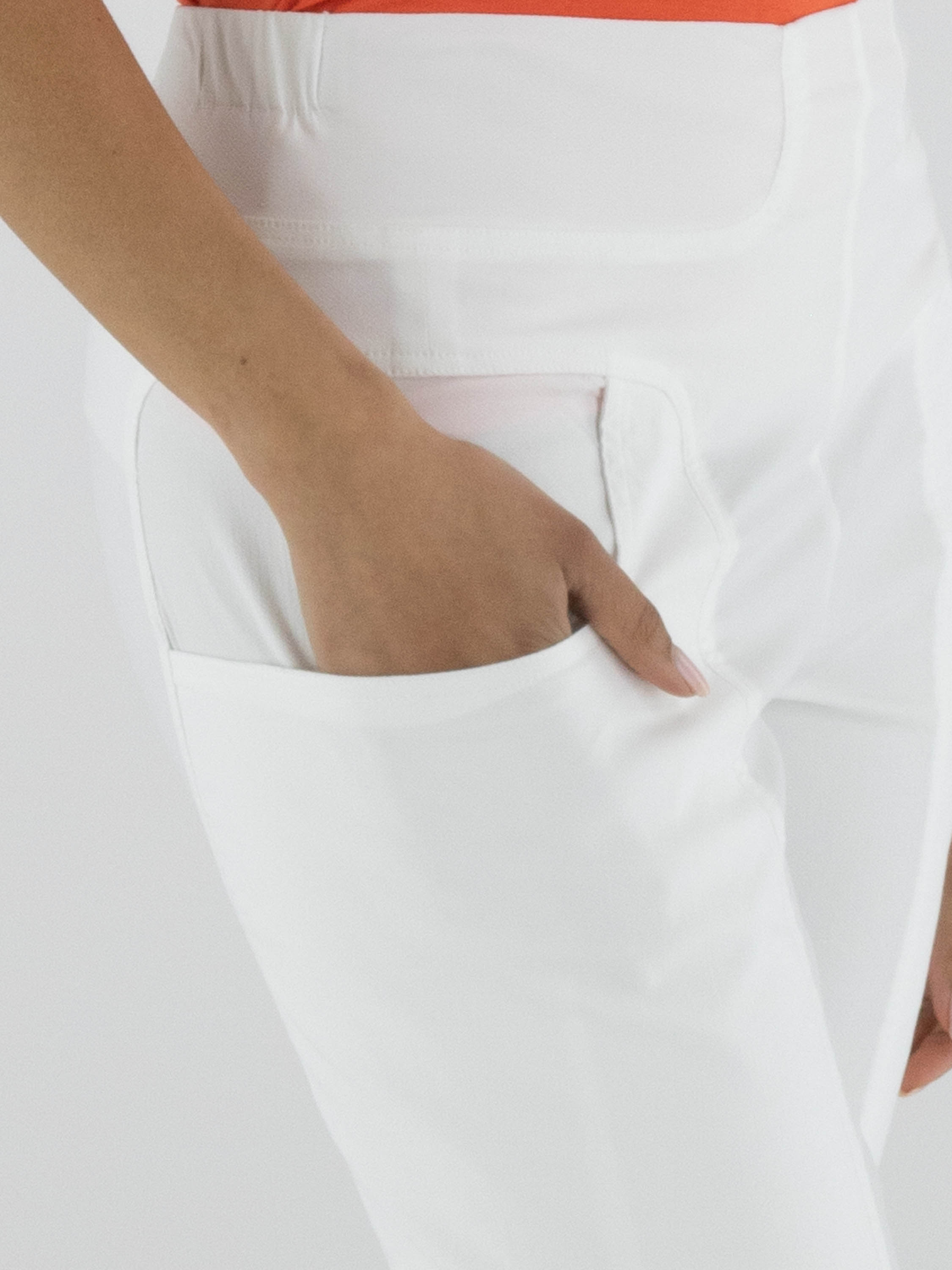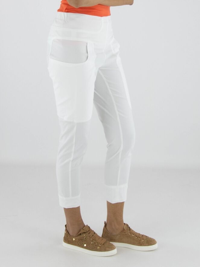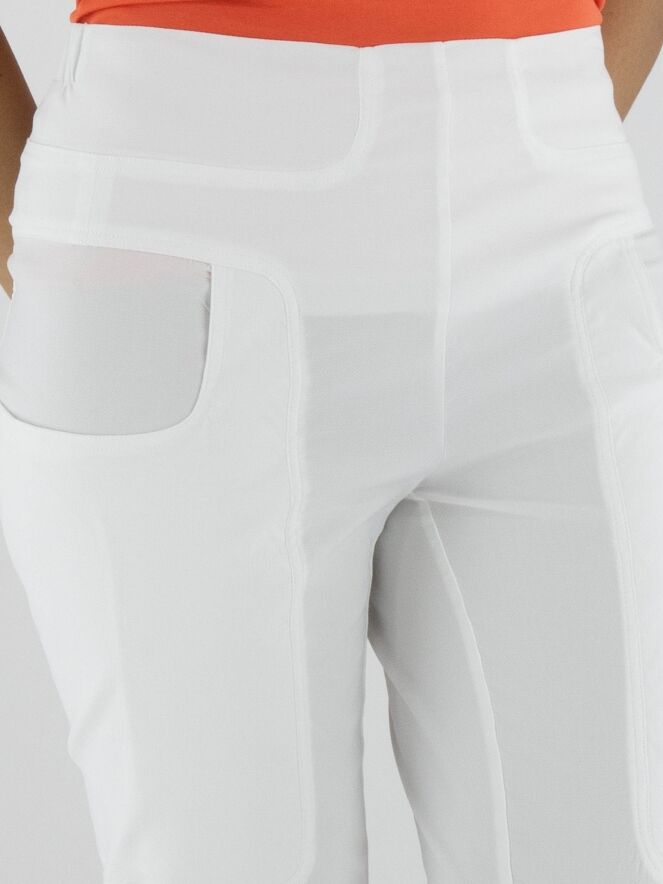 Broek van Rundholz Black Label in een elegante roomwitte tint. De elastische tailleband zorgt voor een comfortabele en moderne pasvorm. De steekzakken zijn iets verlaagd en aan de zijkanten geplaatst, wat het ontwerp een eigentijds karakter geeft. Deze exclusieve designerbroek kan op 30 graden worden gewassen.