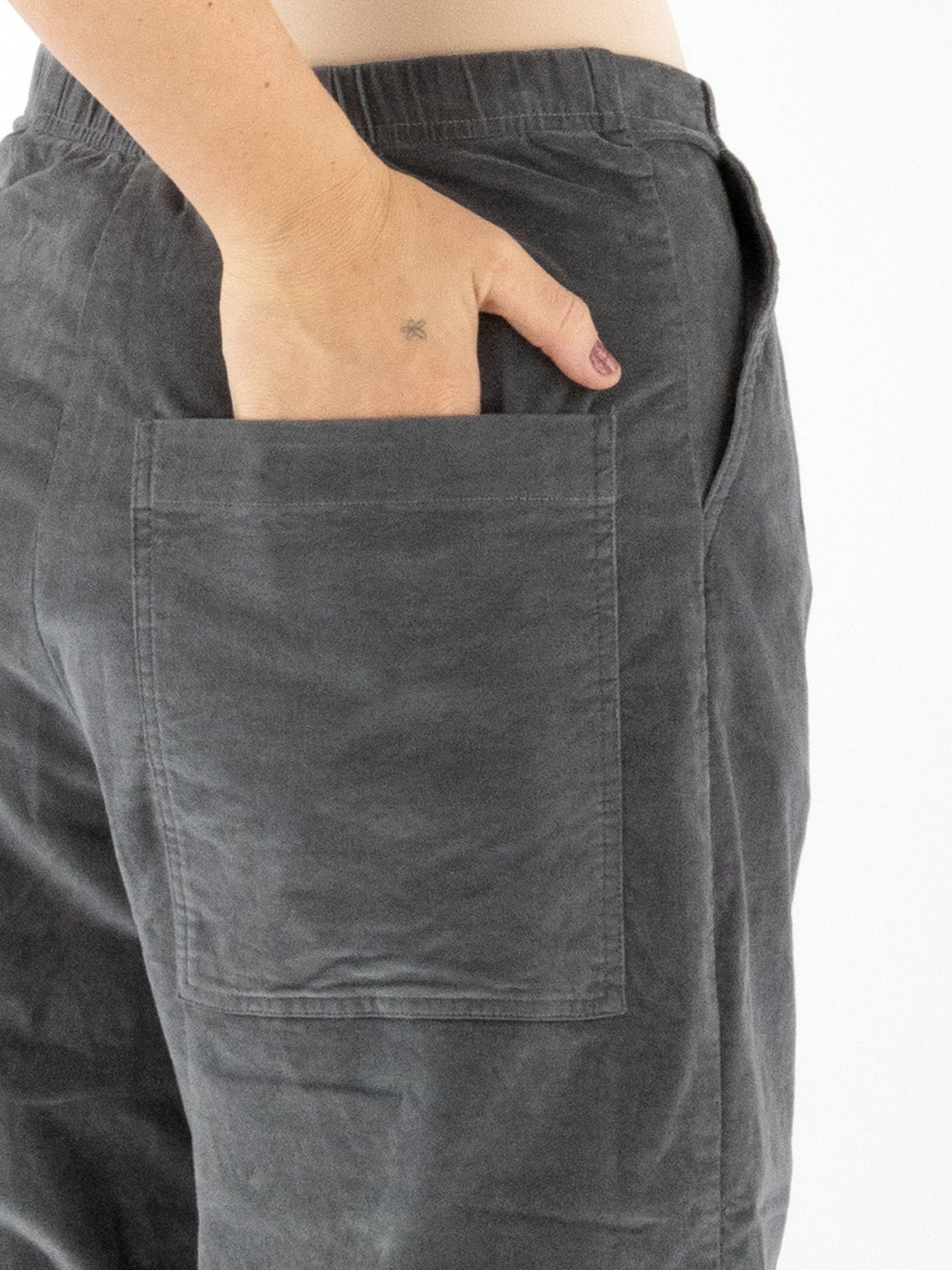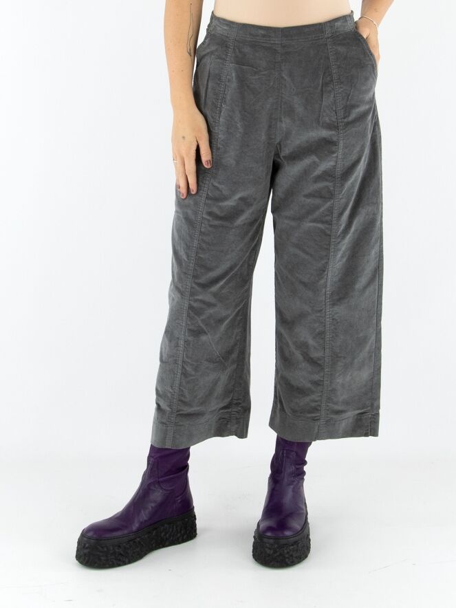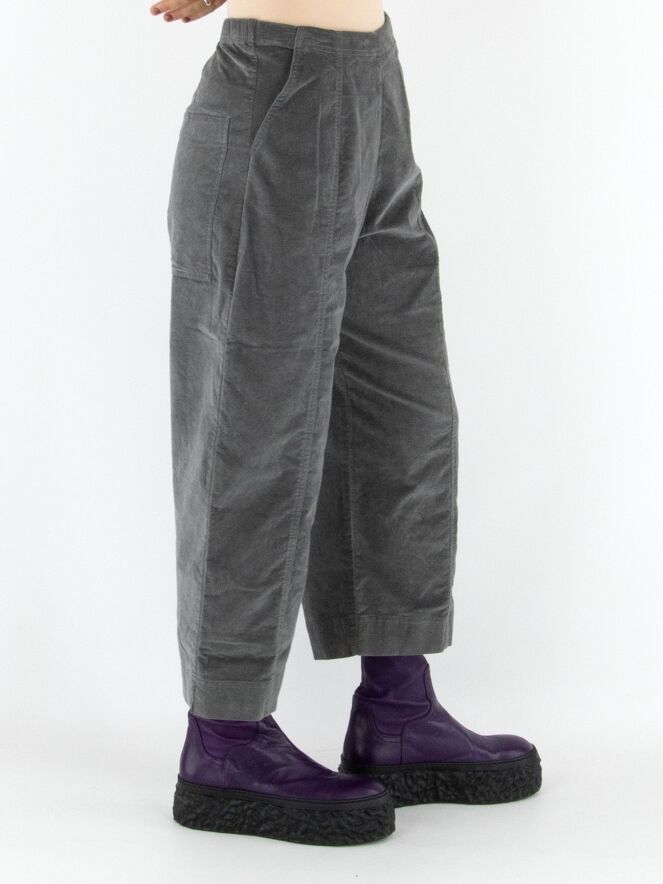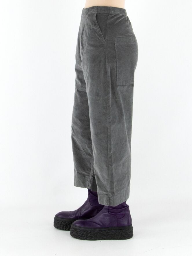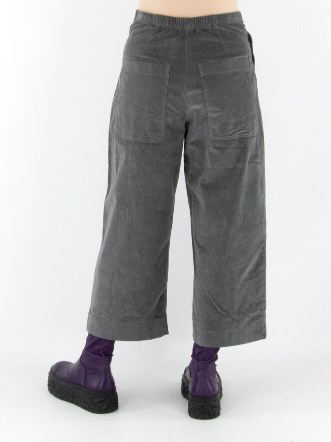 Een recht gesneden velours broek van Rundholz Black Label in grijs. De tailleband is elastisch. De broek heeft steekzakken en kan op 30 graden worden gewassen.