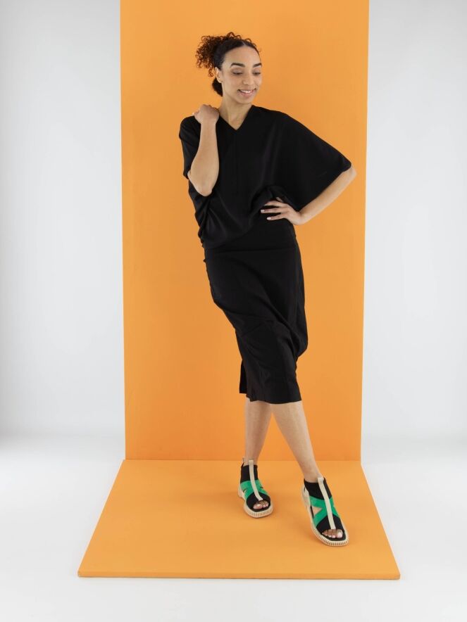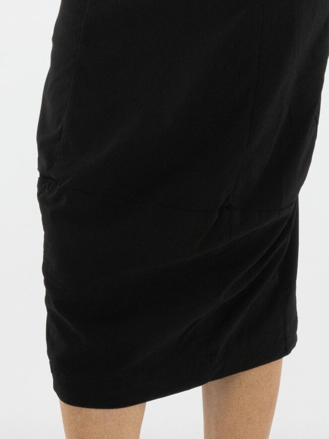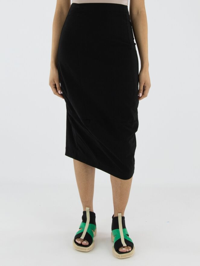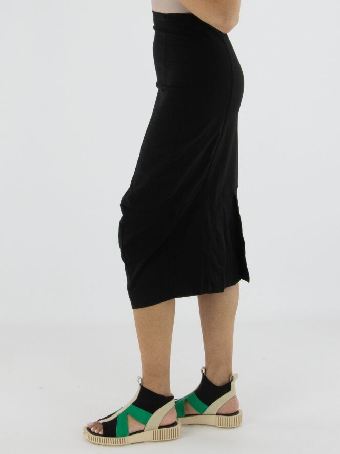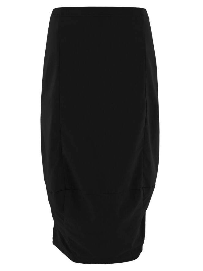 Een rok van Rundholz Black Label in de kleur zwart. De tailleband is elastisch. De rok loopt taps toe en is ongevoerd. Deze rok kan op 30 graden worden gewassen.