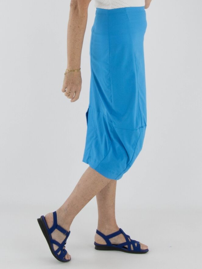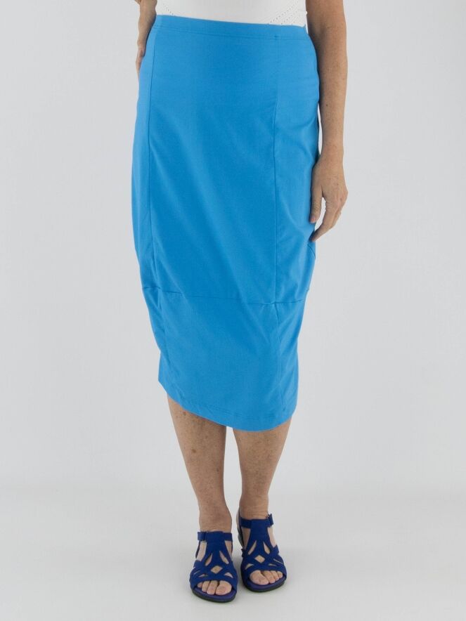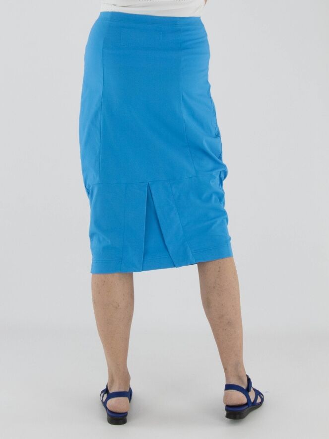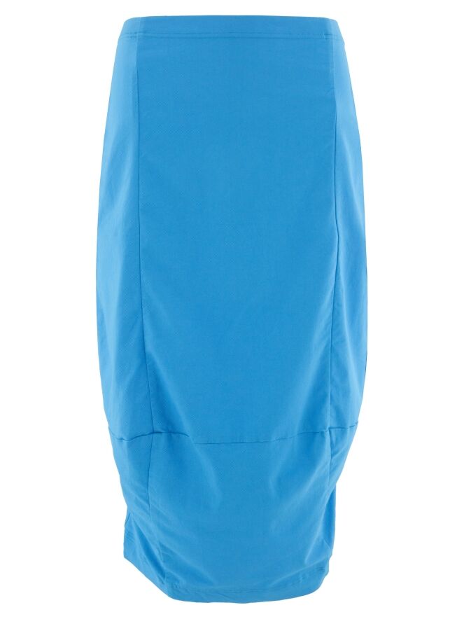 Een rok van Rundholz Black Label in de kleur helderblauw. De tailleband is elastisch. De rok loopt taps toe en is ongevoerd. Deze rok kan op 30 graden worden gewassen.