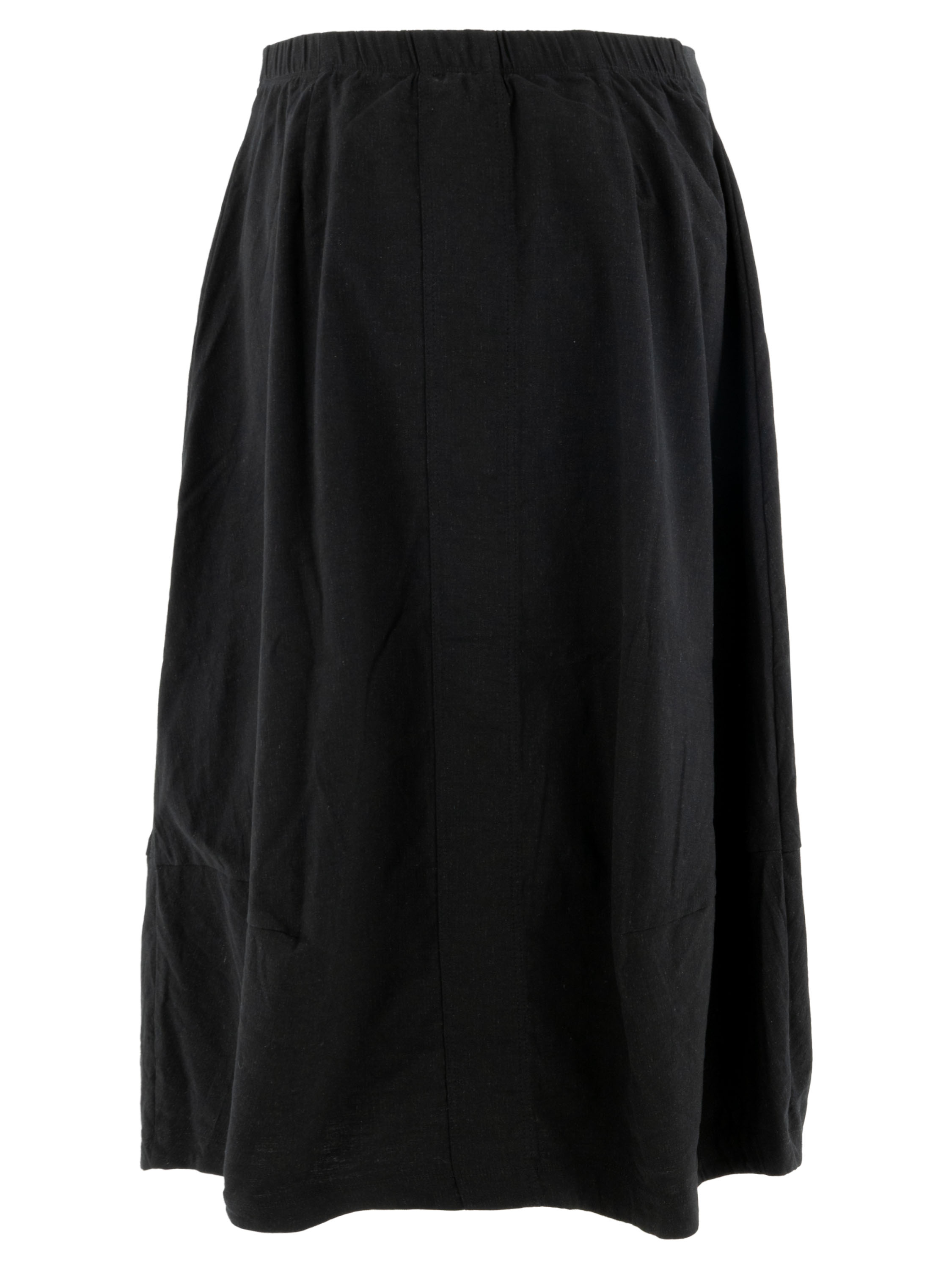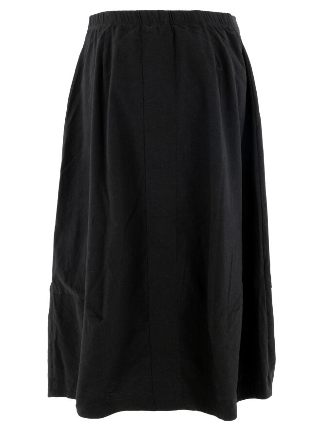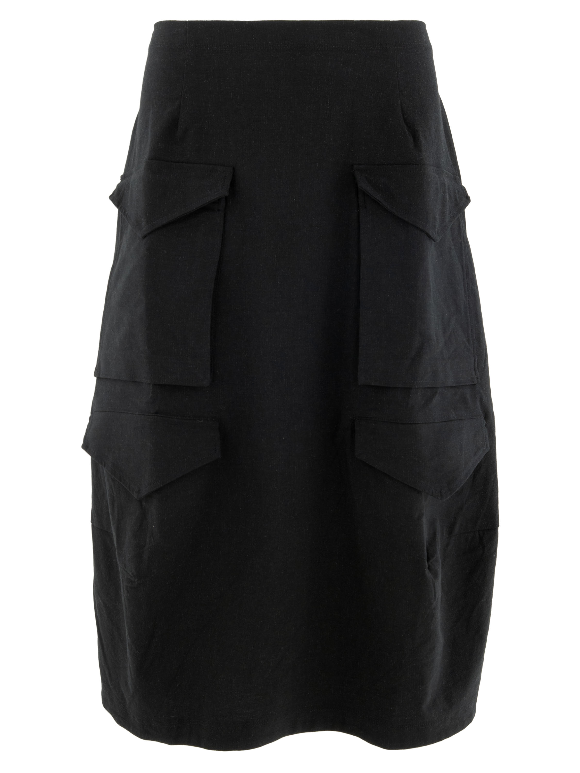 Een rok van Rundholz Black Label in de kleur zwart. In de taille zit een elastische band. Aan de voorzijde bevinden zich enkele decoratieve zakken met grote omslagen. De rok heeft een ballonvorm en kan op 30 graden worden gewassen.