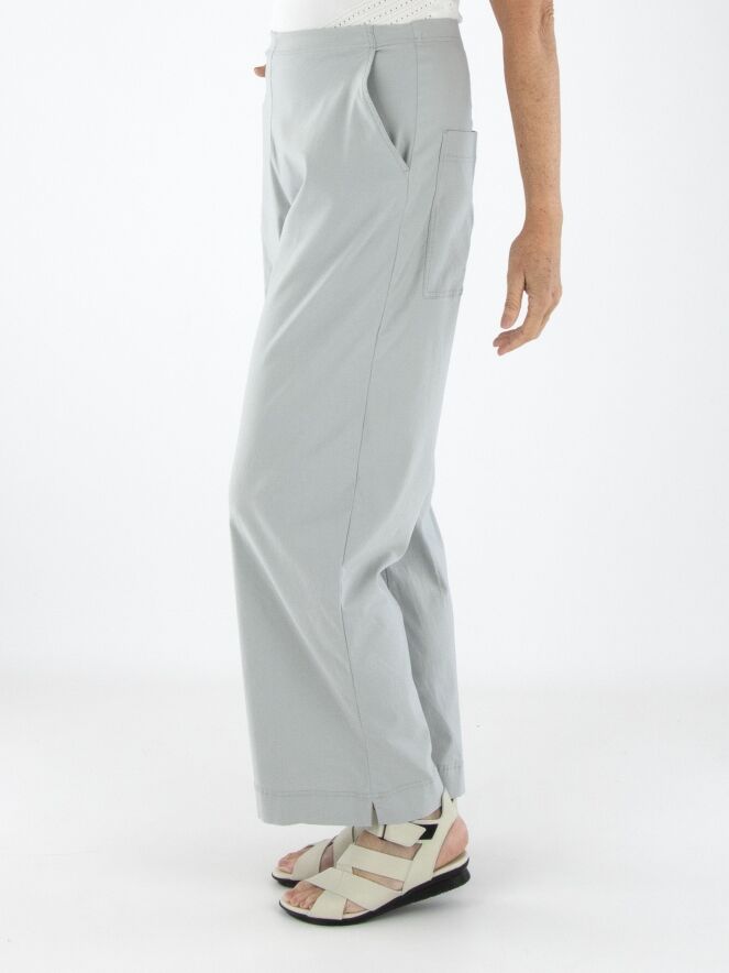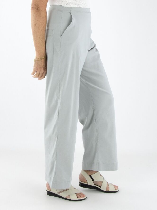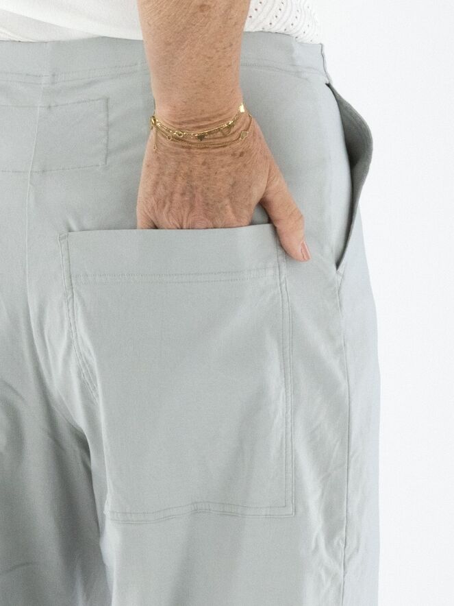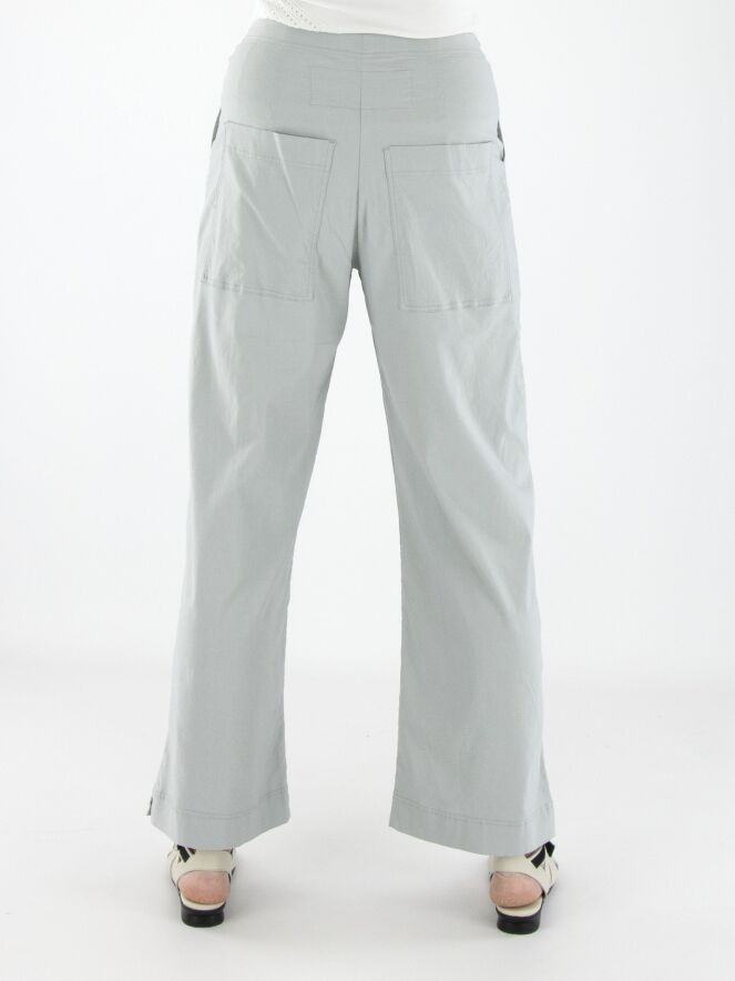 Een broek van Rundholz Black Label in lichtgrijs. De tailleband is elastisch. De pijpen zijn recht gesneden en de broek heeft steekzakken. Deze broek mag op 30 graden worden gewassen.
