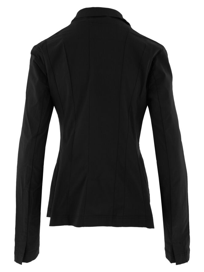 Een blazer van Rundholz black label in de kleur zwart. De blazer heeft een verborgen sluiting met 5 knopen en is ongevoerd. Vanuit de schouders zijn meerdere stiknaden die een lichte taille lijn accentueren. De lange mouwen hebben dezelfde decoratieve stiknaden Deze blazer mag op 30 graden worden gewassen.