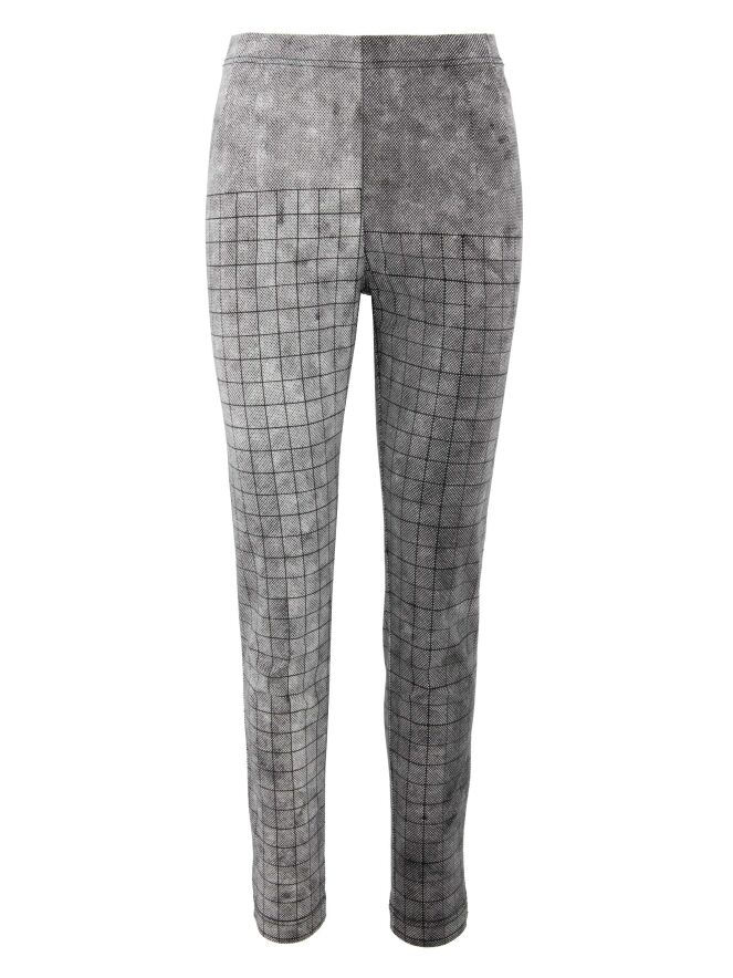 Een broek van Rundholz black label in een gevarieerde grafische ruitprint met de kleur zwart en wit. In de taille is een smalle elastieken band. Deze broek mag op 30 graden worden gewassen.