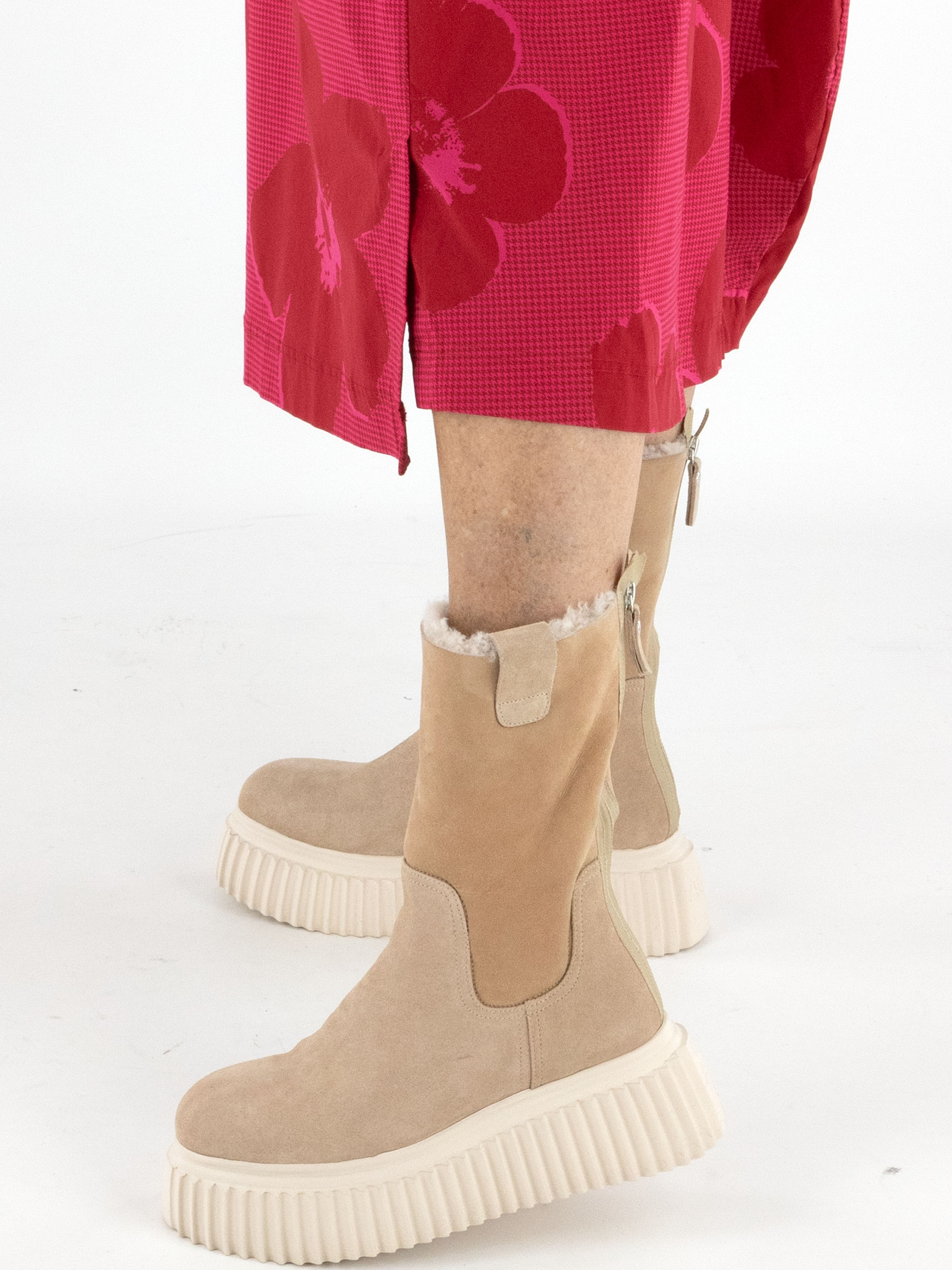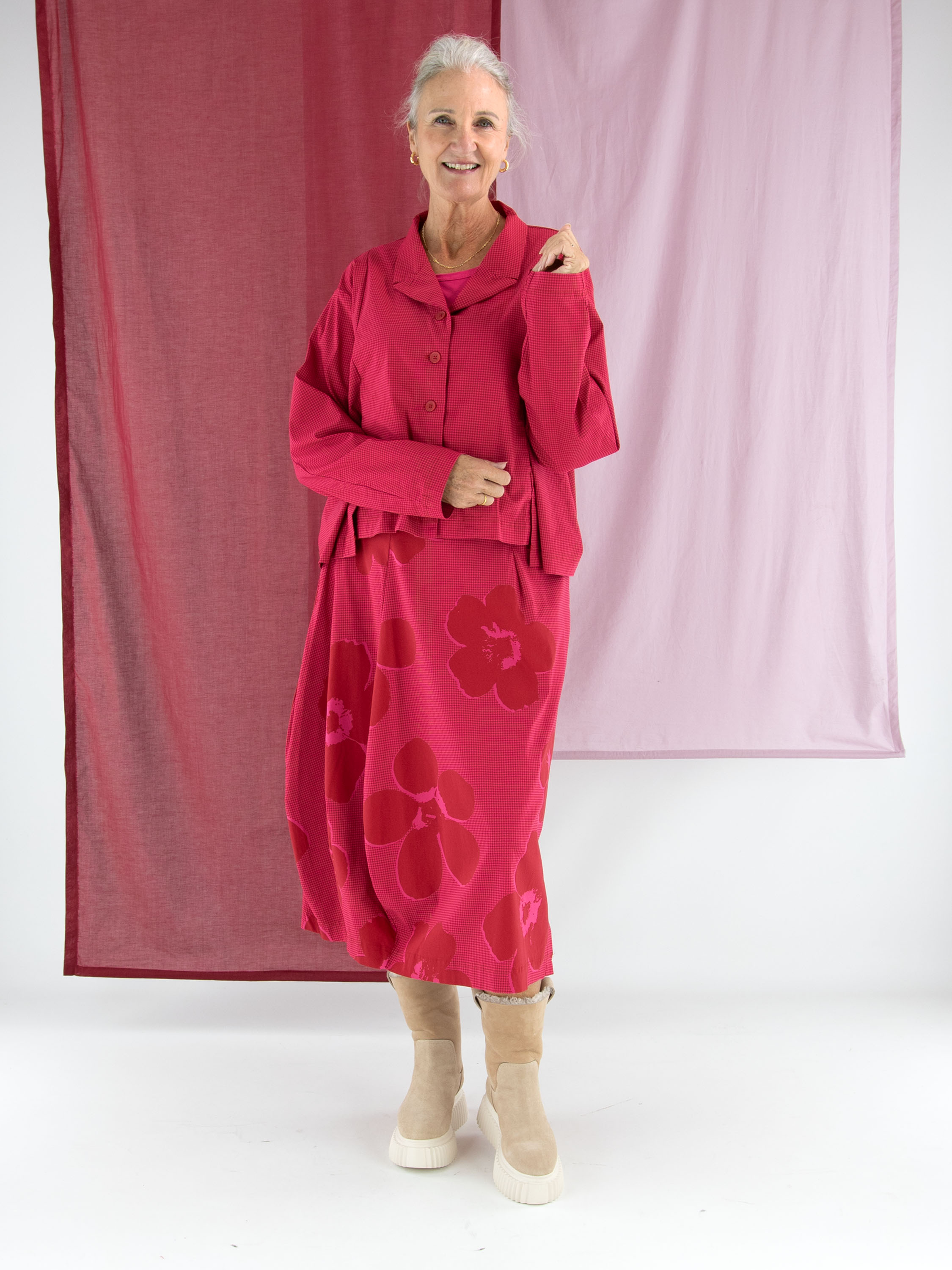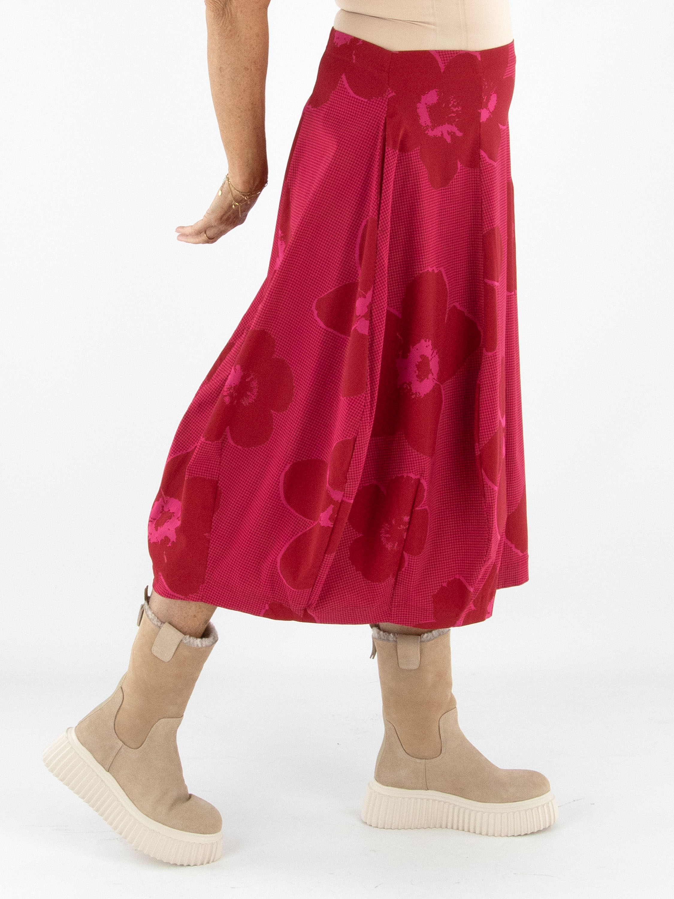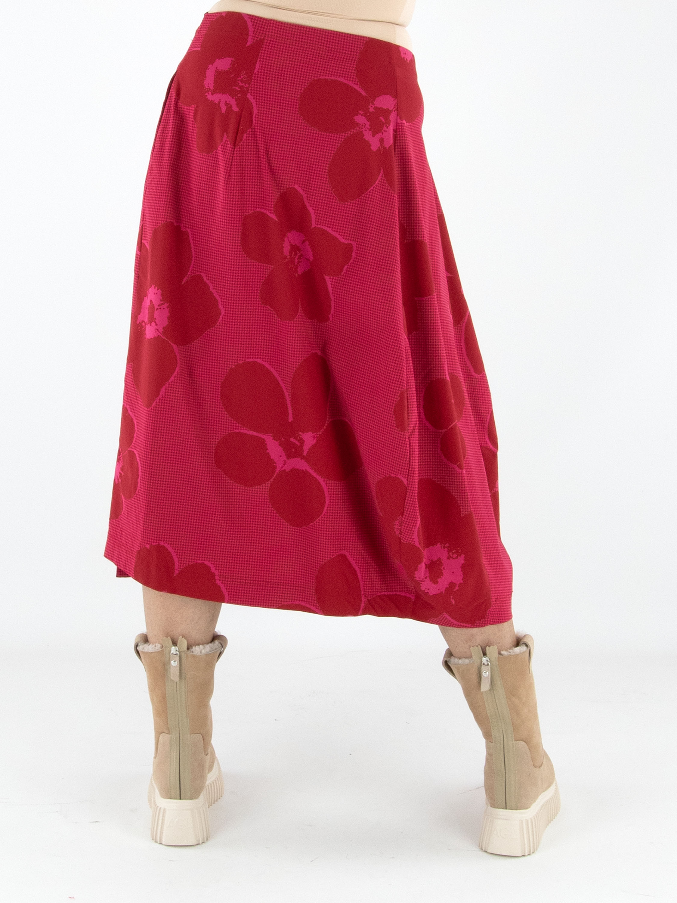 Een rok van Rundholz Black Label in een pied-de-coq print, overlapt met grote bloemen in rood en pink. De elastische tailleband zorgt voor een comfortabele pasvorm. Net onder de tailleband zijn handige steekzakken verwerkt. De rok heeft een moderne ballonvorm en kan op 30 graden worden gewassen.