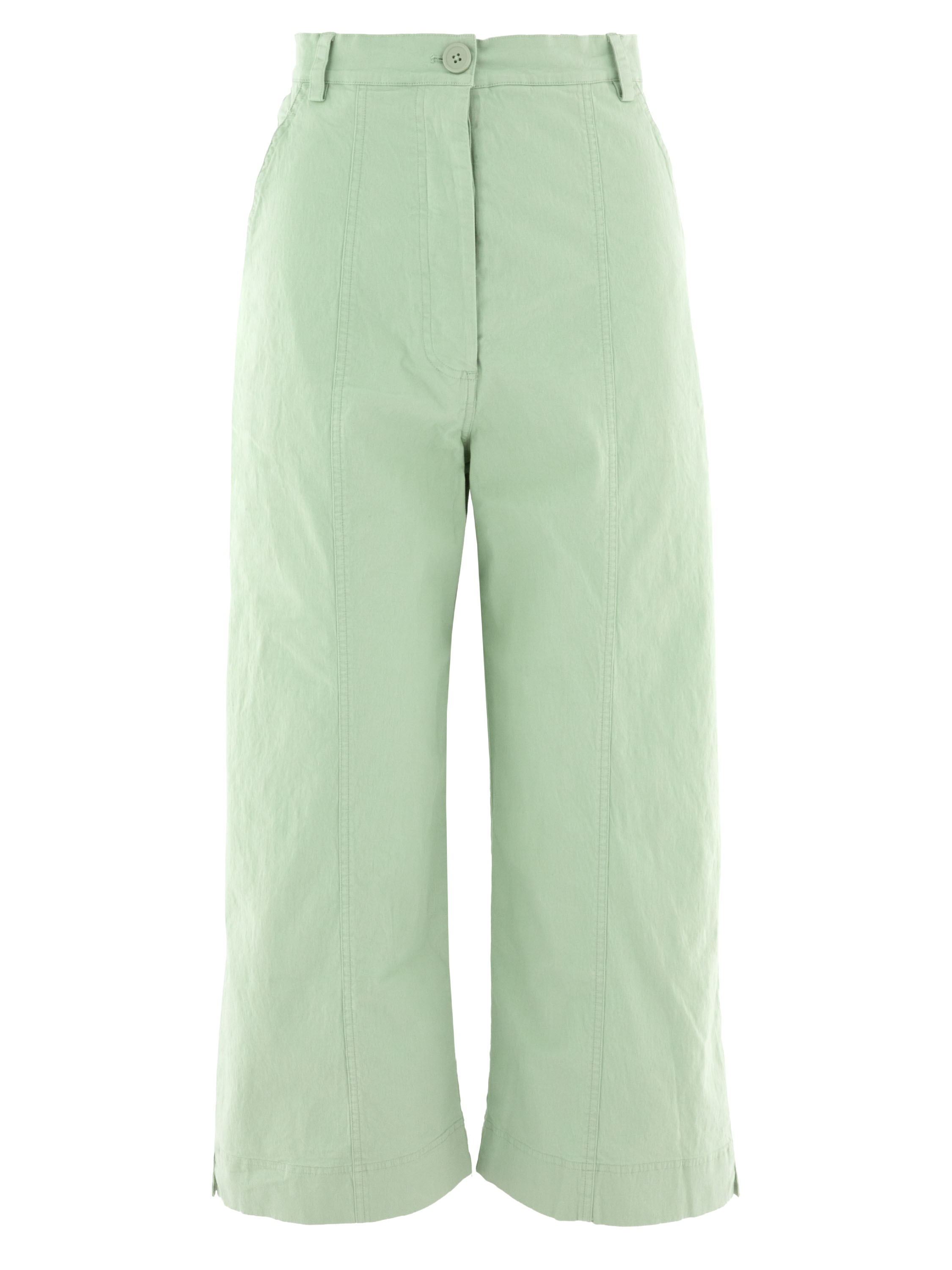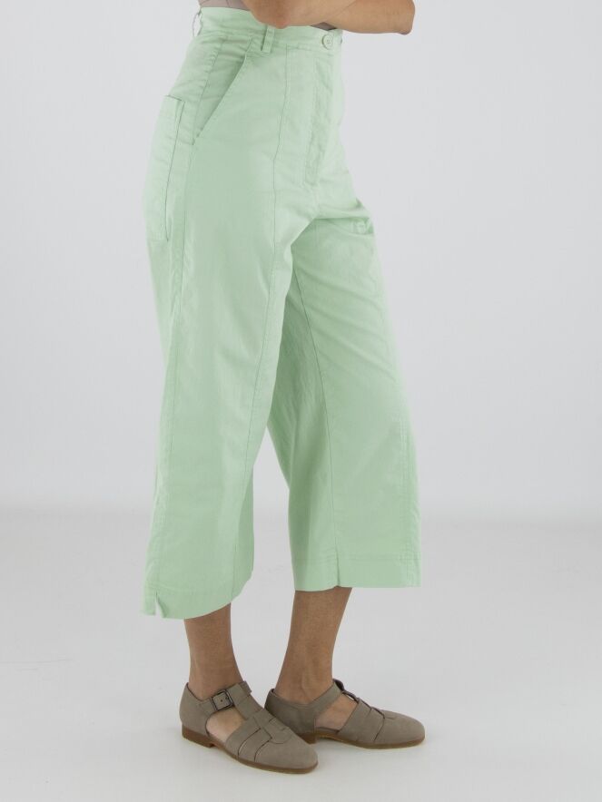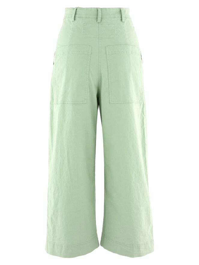 Broek van Rundholz Black Label in een zachte pastel pistachetint. De pijpen zijn recht gesneden, wat zorgt voor een tijdloos en modern silhouet. De broek is voorzien van steekzakken en kan op 30 graden worden gewassen.