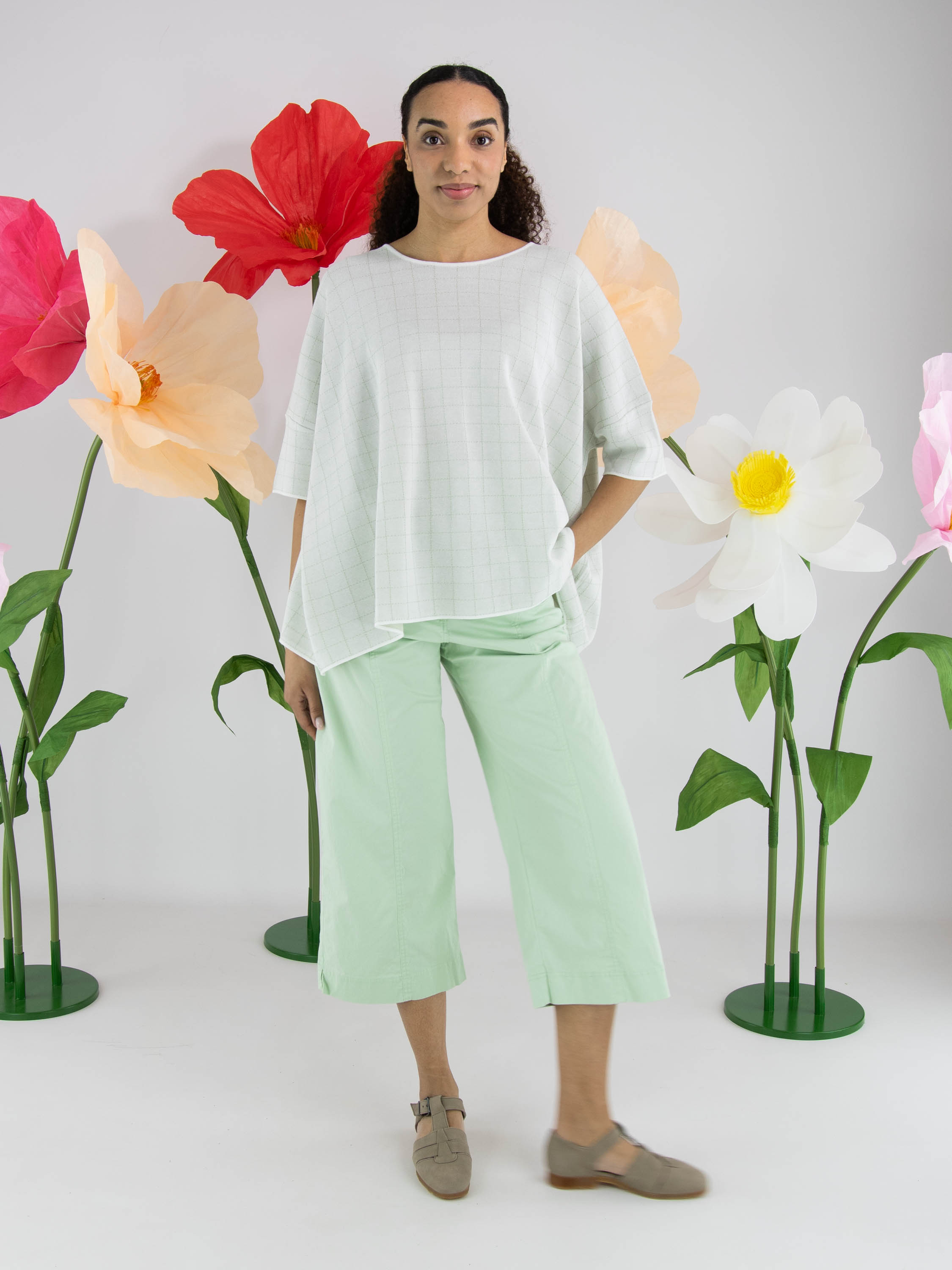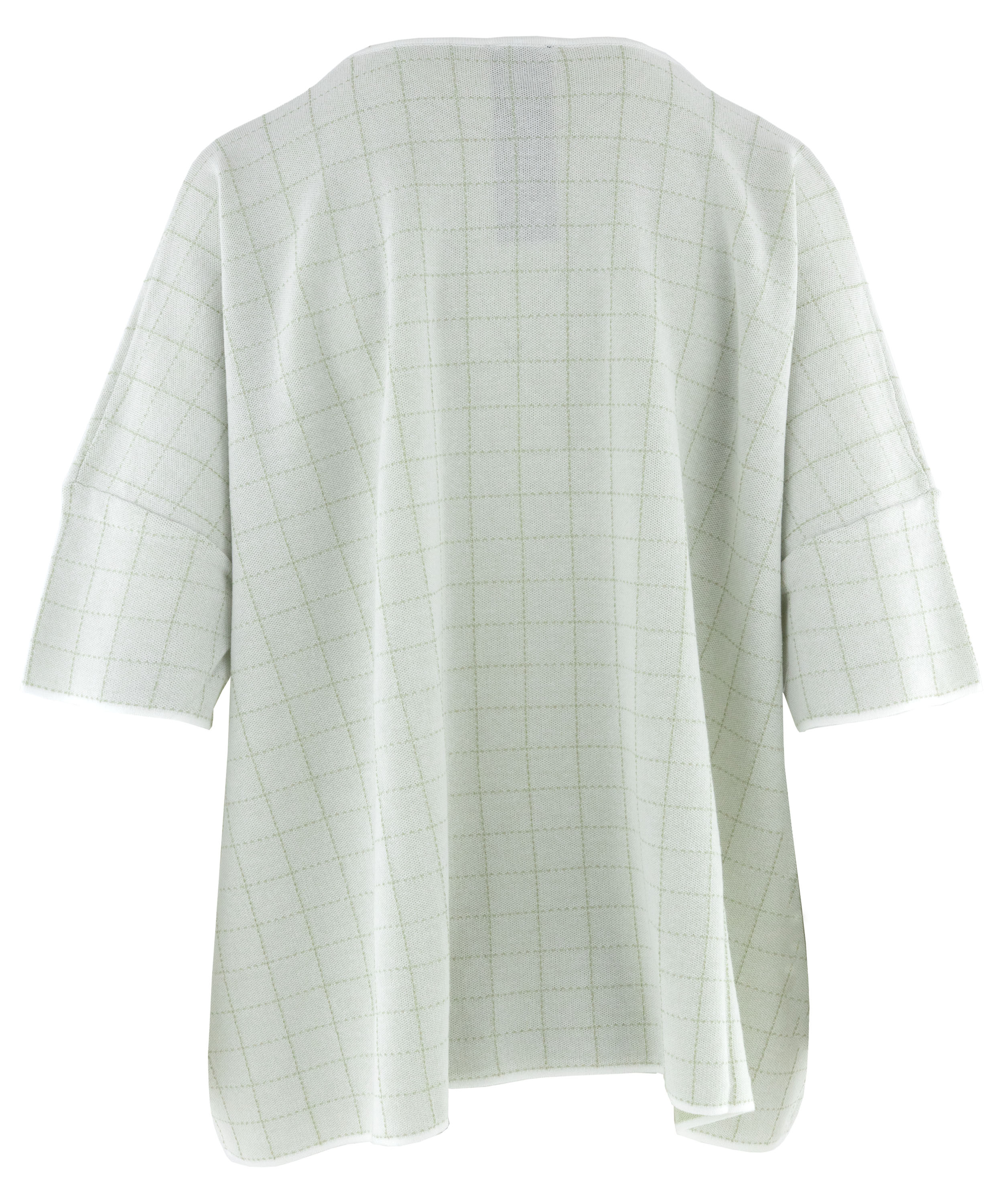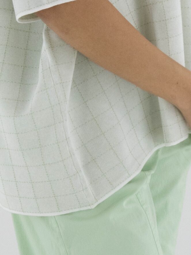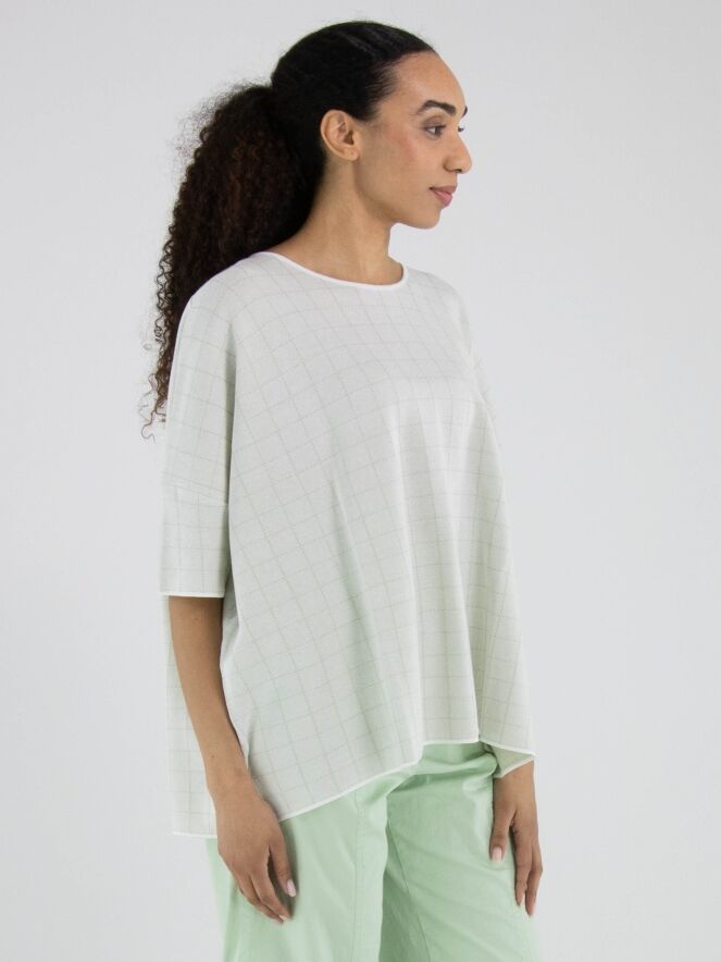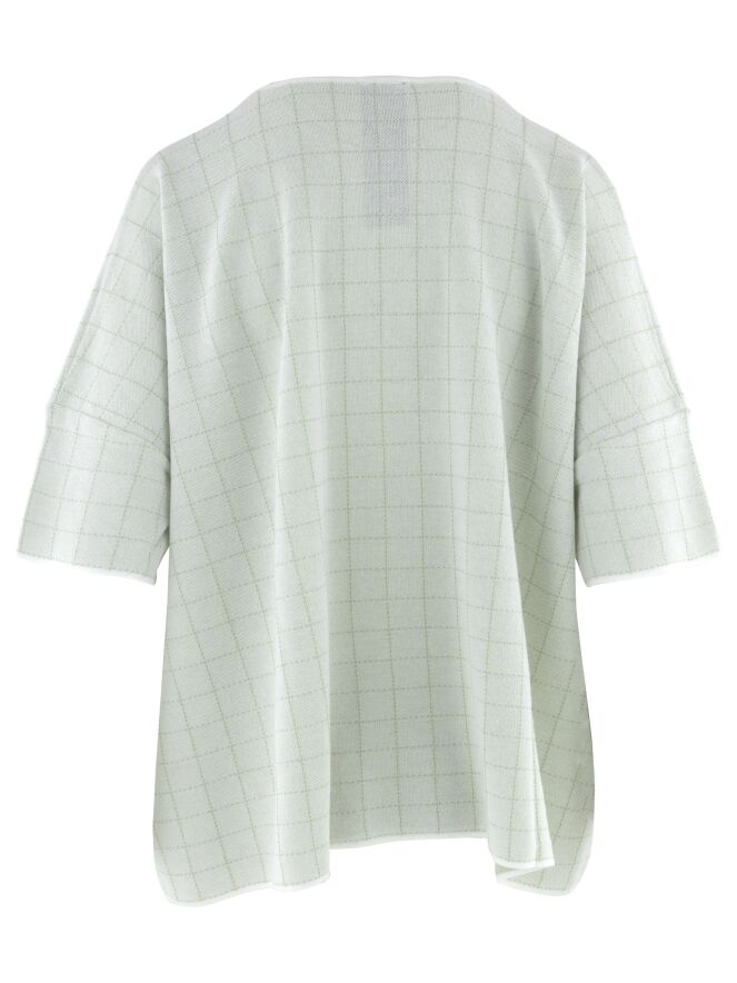 Wijde pullover van Rundholz Black Label in een elegante roomwitte tint. In de stof is een subtiel blokpatroon met gouddraad geweven, wat zorgt voor een verfijnde glans en een luxueus accent. De pullover heeft korte mouwen en een ronde hals. Dit exclusieve designeritem kan op 30 graden worden gewassen.