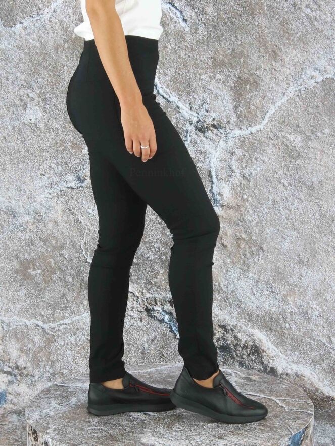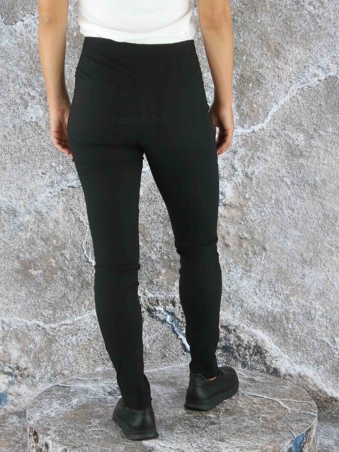 Een broek van Rundholz Black label in een zwarte kleur. In de taille is een elastieken band. Deze broek mag op 30 graden worden gewassen.