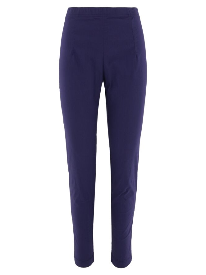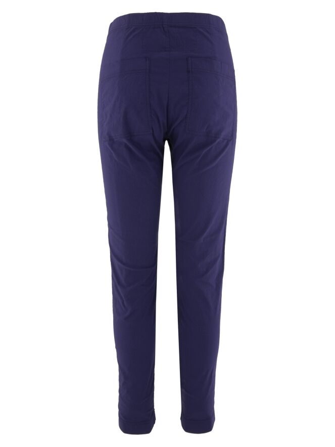 Een broek van Rundholz Black label in een kobaltblauwe kleur. In de taille is een elastieken band. Deze broek is slank gesneden en mag op 30 graden worden gewassen.