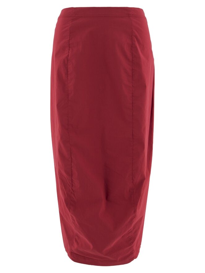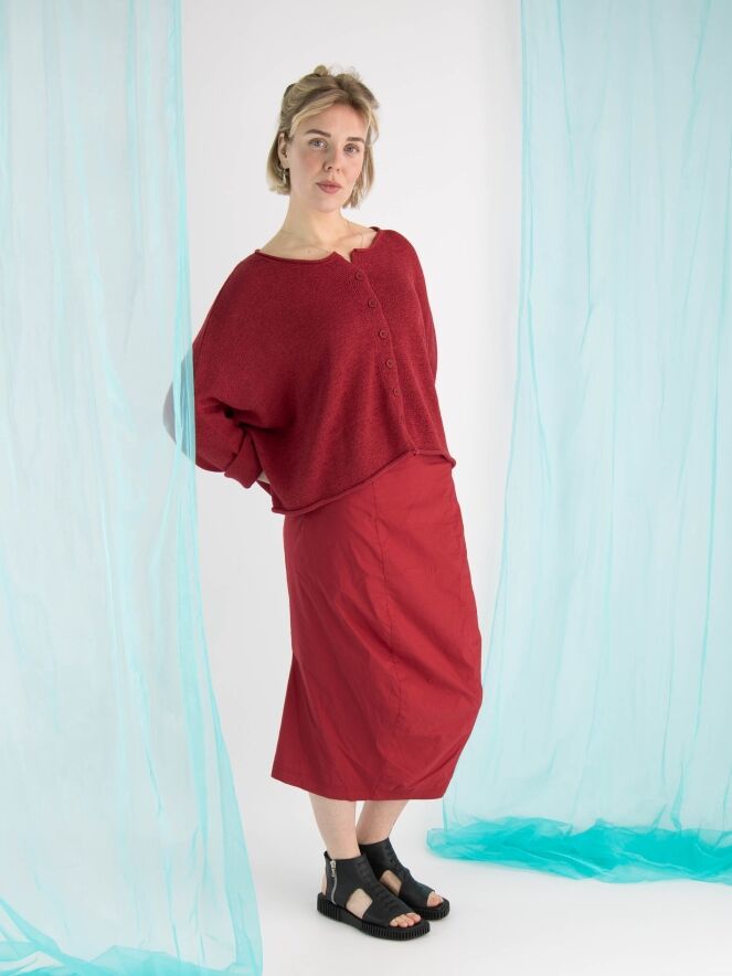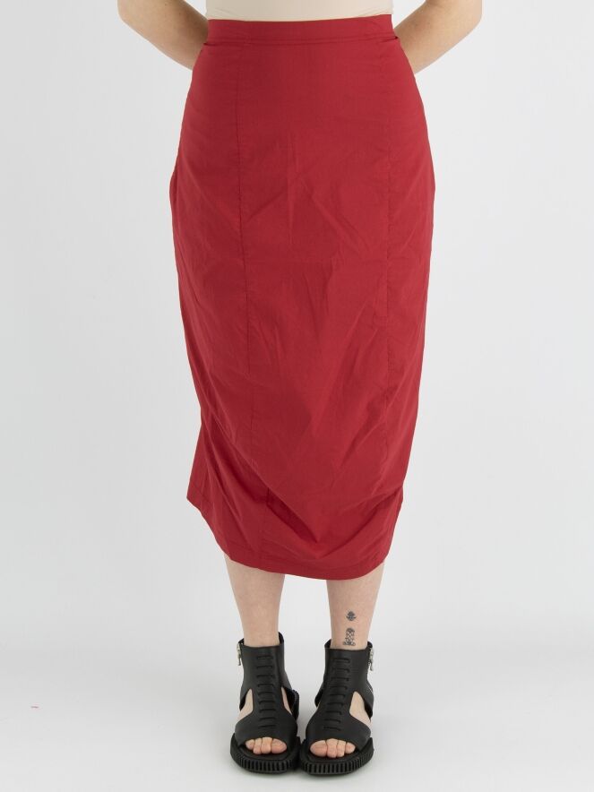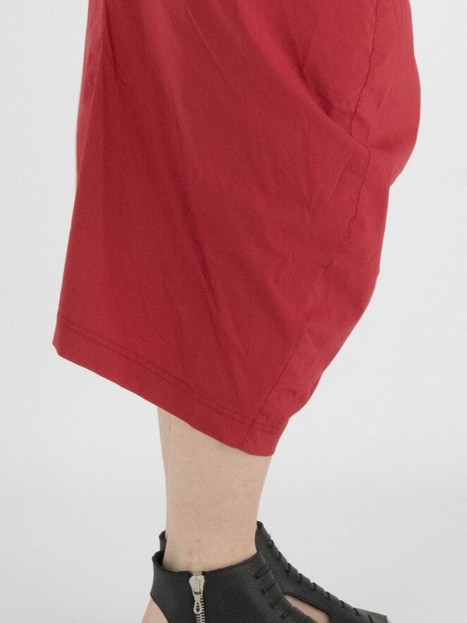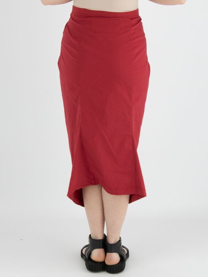 Een rok van Rundholz black label in de kleur rood. In de taille is de rok elastisch. De rok loopt taps toe en is ongevoerd. Deze rok mag op 30 graden worden gewassen.