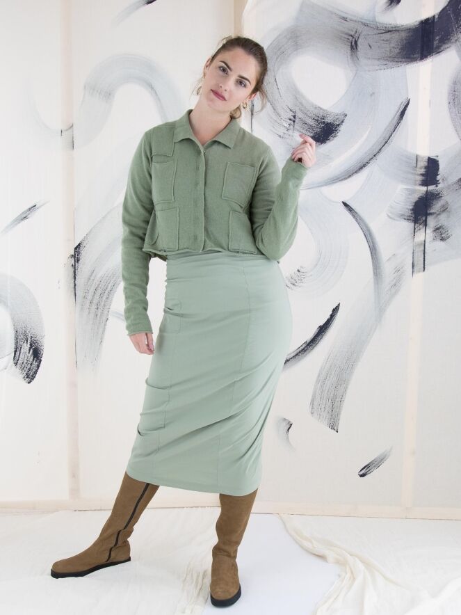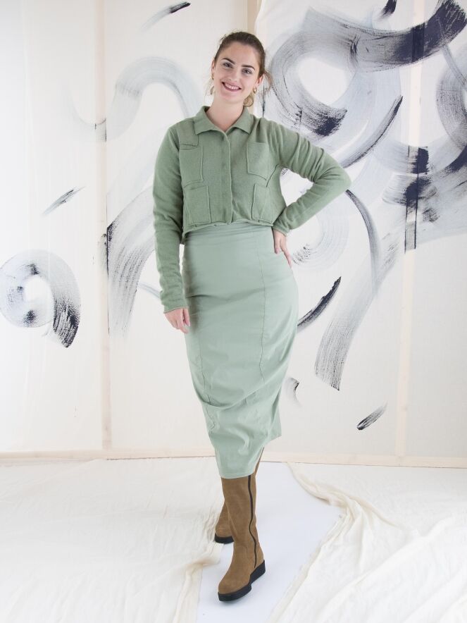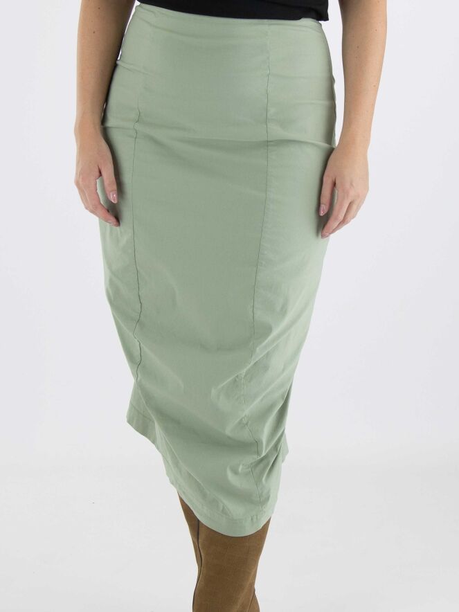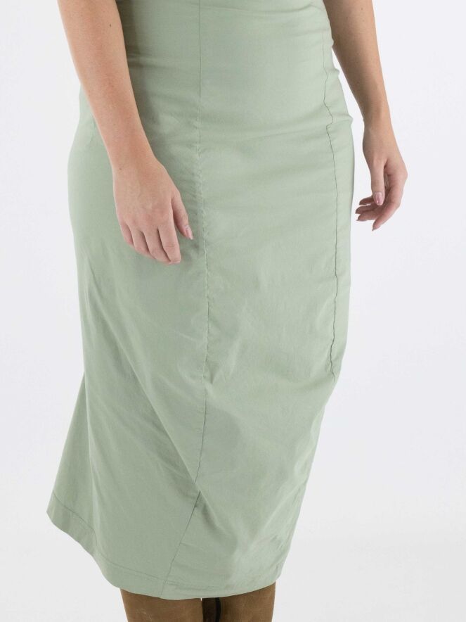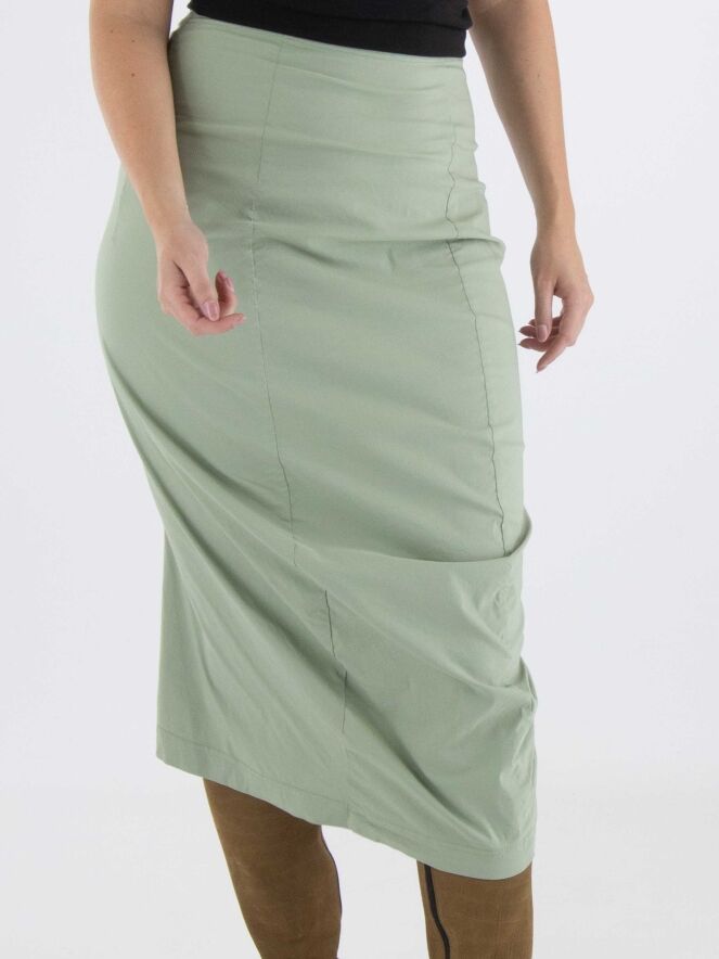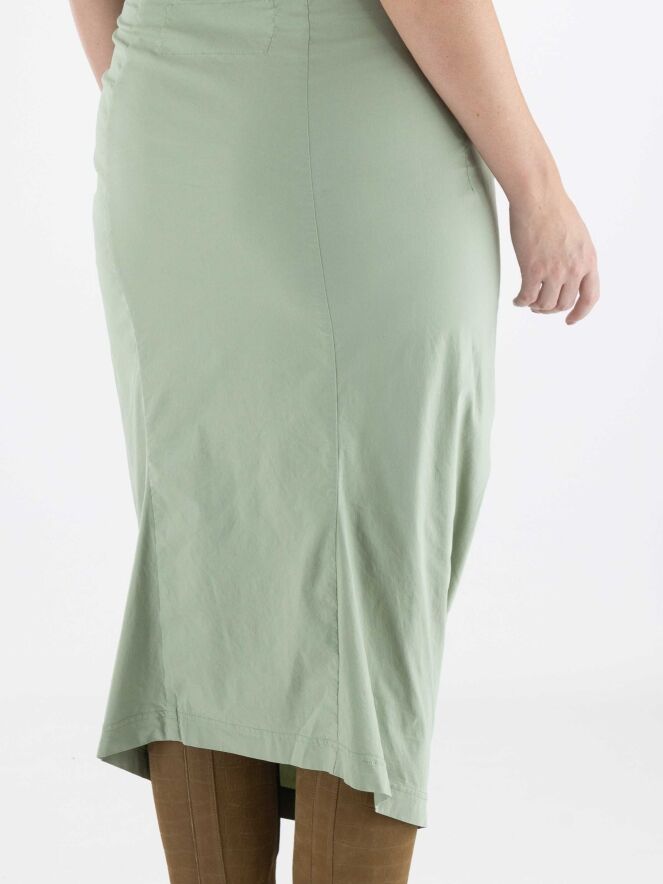 Een rok van Rundholz black label in de kleur lindegroen. In de taille is de rok elastisch. De rok loopt taps toe en is ongevoerd. Deze rok mag op 30 graden worden gewassen.