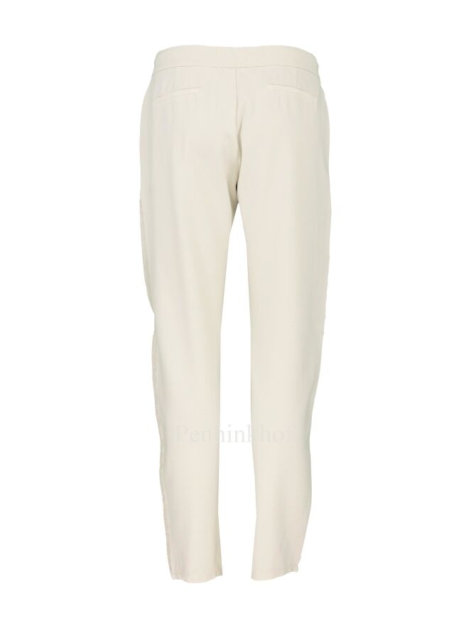 Een joggingbroek van Tandem in een beige kleur. De breuk heeft koord waarmee de broek kan worden versteld. De broek heeft aan de beide zijde een linnen bies. De broek heeft 2 decoratieve steekzakken aan de achterkant. De broek mag op 30 graden worden gewassen.
