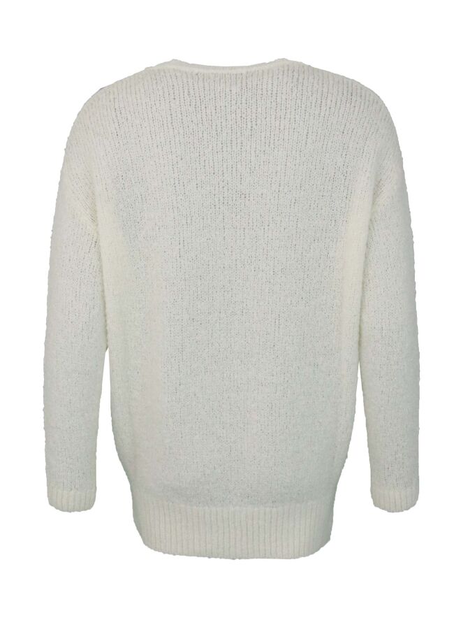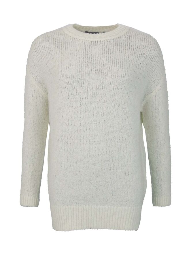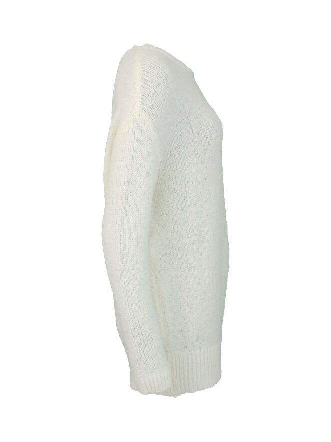 Een lange luxe pullover van transit in de kleur roomwit. De rand van de ronde hals heeft een boord. Deze pullover mag op de hand worden gewassen.