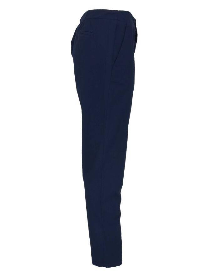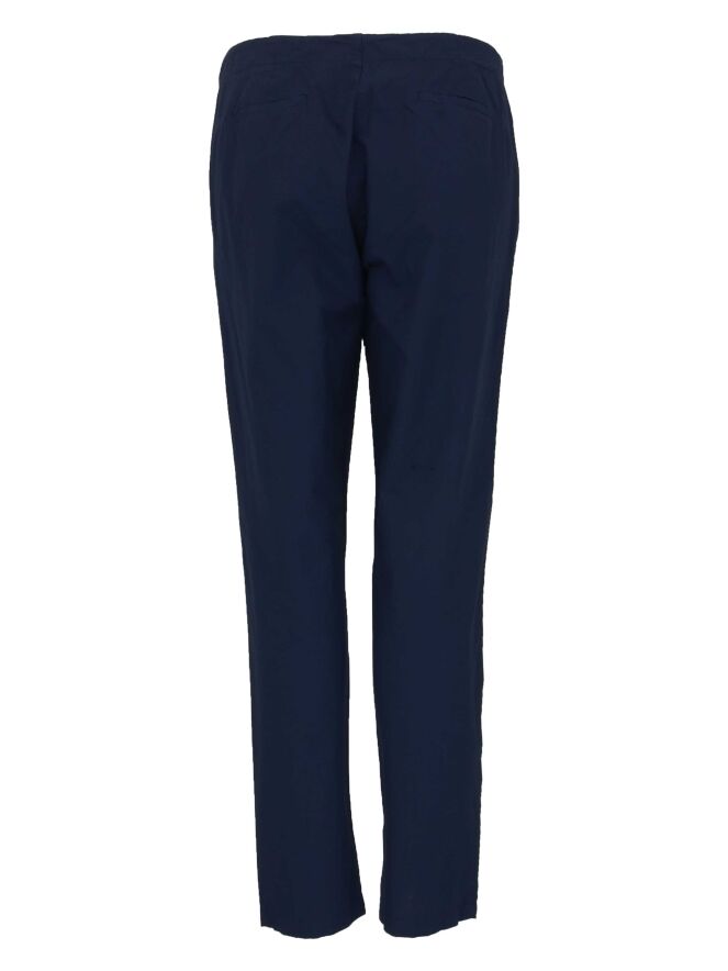 Een broek van Transit in een zachte indigo blauwe kleur. De broek heeft steekzakken en mag op 30 graden worden gewassen.