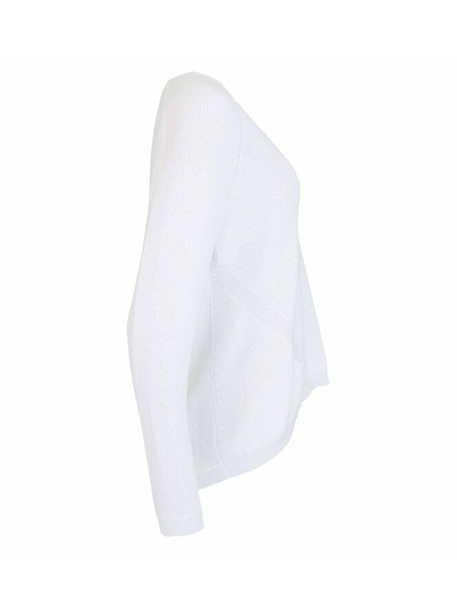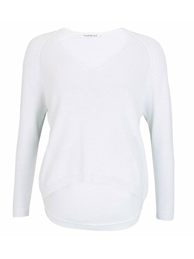 Een luxe pullover van Transit in de kleur wit. De pullover heeft een V - Hals en lange mouwen. Deze pullover mag op 30 graden worden gewassen.