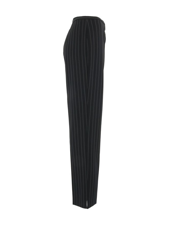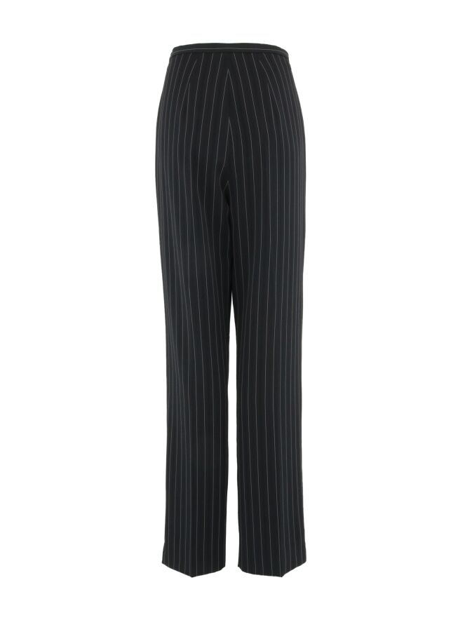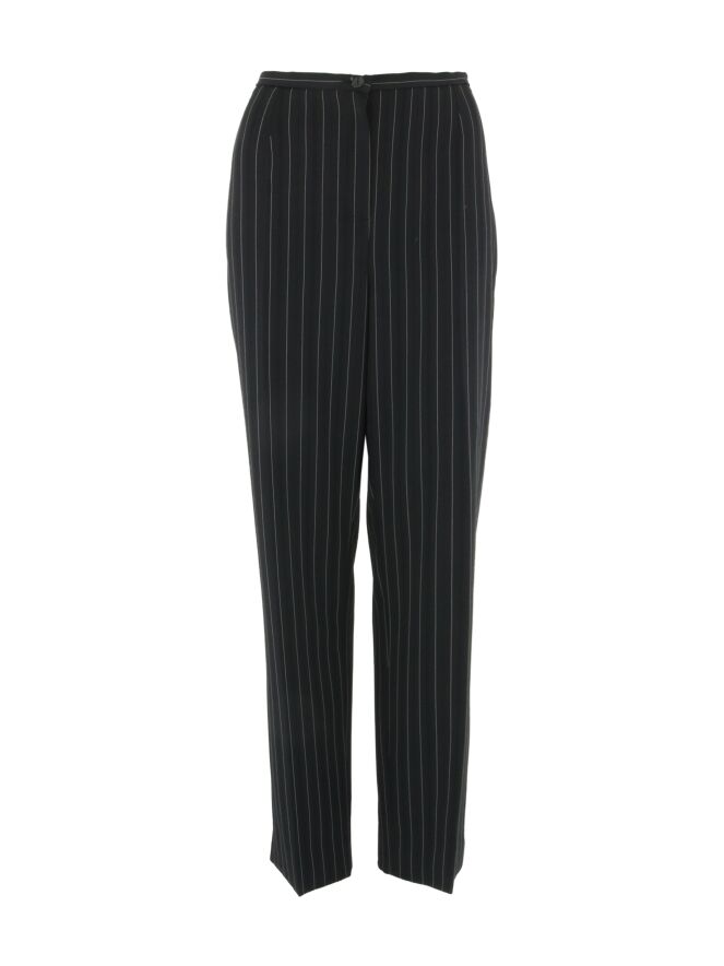 Een broek van Zucchero in een krijtstreep met de kleuren zwart en wit. De broek heeft een smalle taille band. Aan de onderkant van de pijpen is aan de zijkanten en kort splitje. Deze broek mag niet worden gewassen.